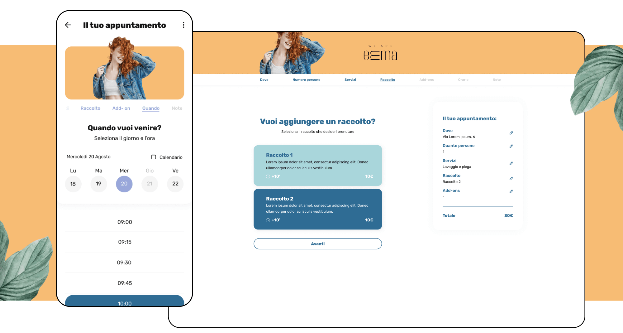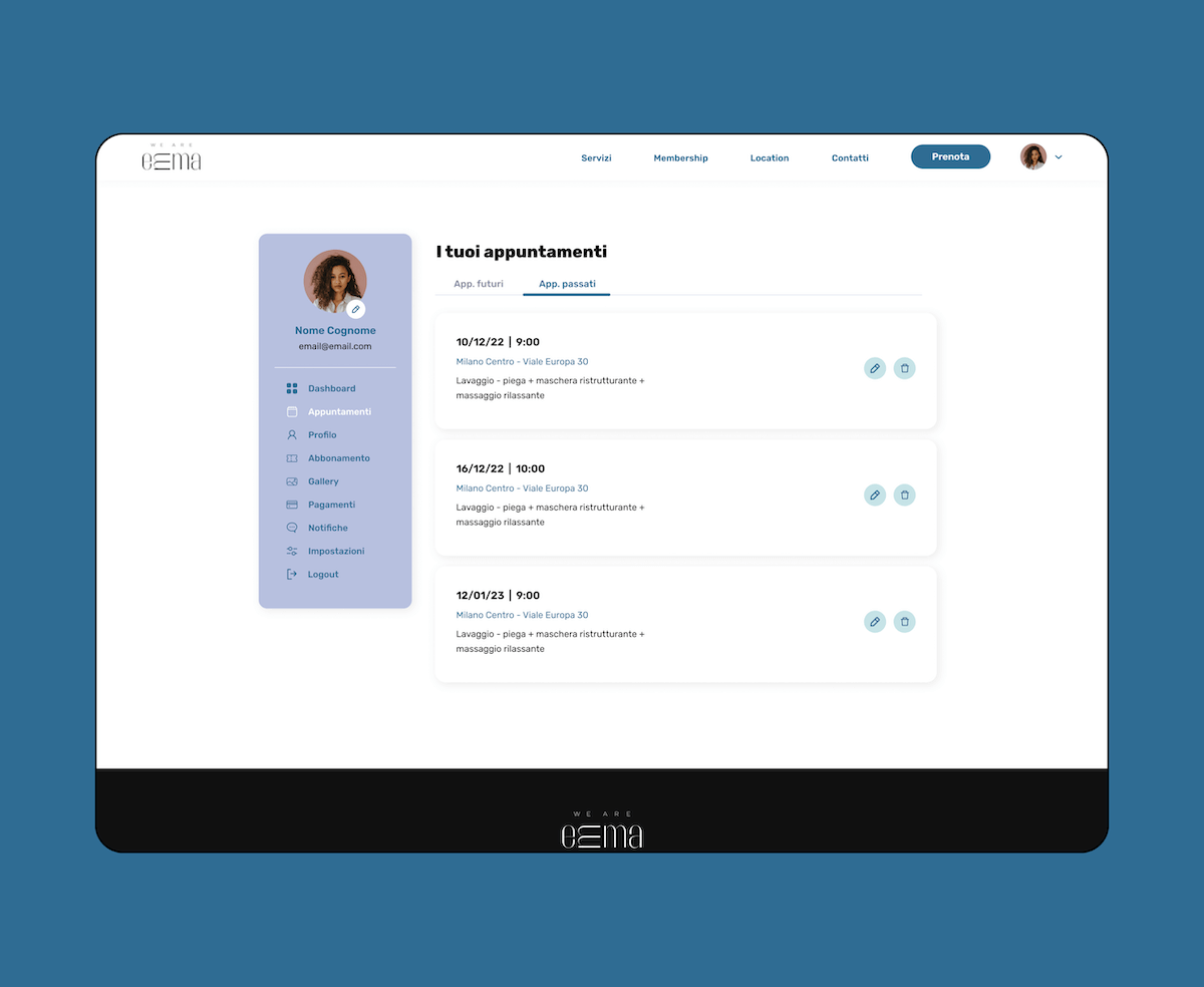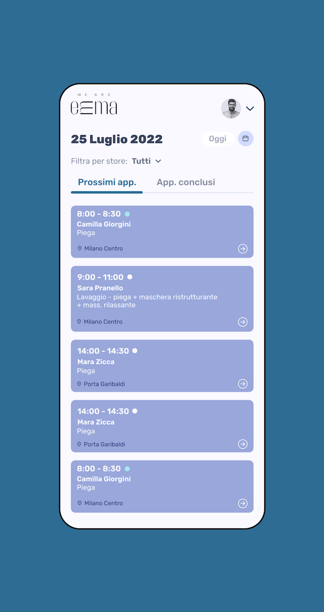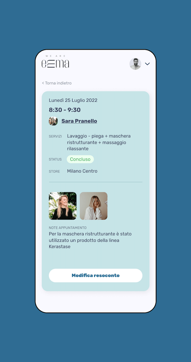 Per We are Emma abbiamo realizzato una web app che permettesse da una parte ai clienti di prenotare gli appuntamenti e dall'altra agli amministratori di gestire tutta l’operatività all’interno degli hair salon della catena.