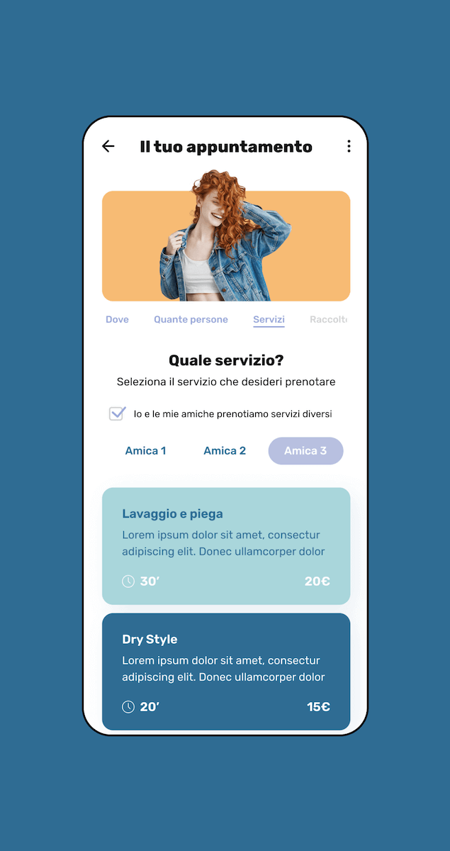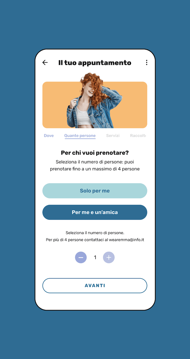 La filosofia di We are Emma è quella di trasformare il momento della piega in un’occasione di socialità e incontro tra amiche, per questo il cliente ha la possibilità effettuare prenotazioni per più persone contemporaneamente e per ognuna di esse di comporre il trattamento desiderato.
